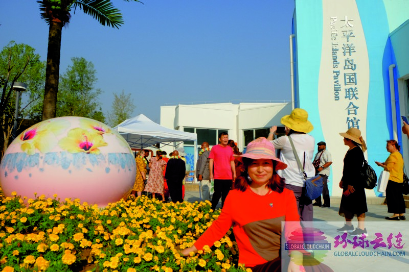 环球云链网站主编王晓玲在世园会太平洋岛国联合馆