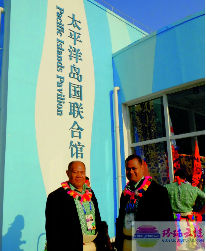 汤加王国驻华大使乌塔阿图阁下与世园会汤加国家日仪式主持人杜波·瓦伊普鲁先生在太平洋岛国联合馆