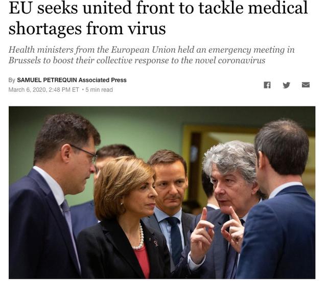 欧盟成员国卫生部长3月6日召开会议,商讨医疗物资问题。ABCnews网站截图