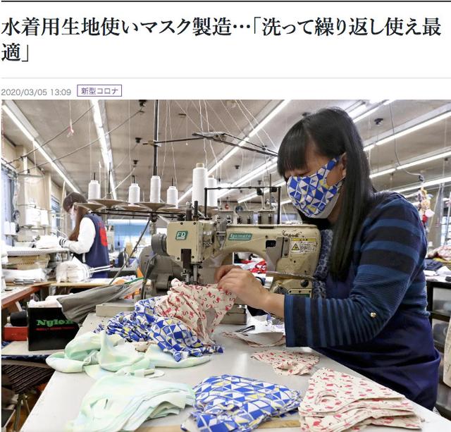 日本一制衣公司用泳衣面料制造口罩。日本读卖新闻网站截图
