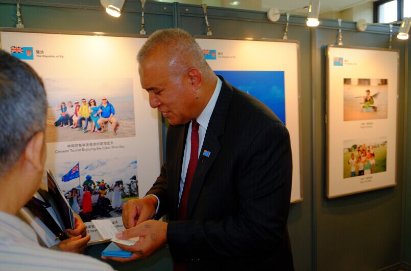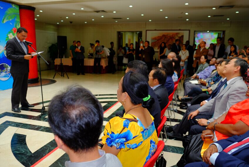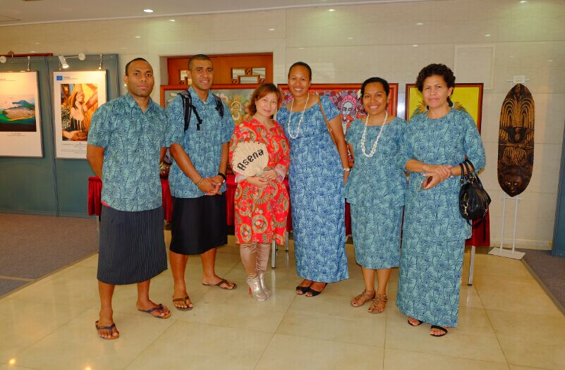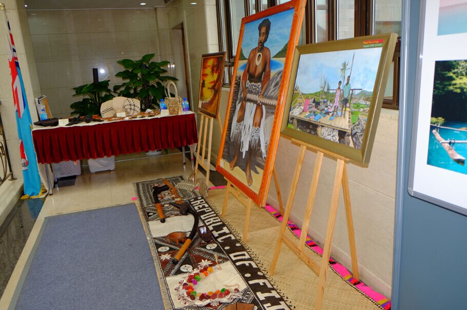 斐济共和国驻华大使约阿尼·奈法卢拉先生致辞说:“中国为太平洋岛屿发展中国家的社会经济发展做出了巨大的贡献。今天的文化展再一次提醒我们文化以及传统的重要性,以及如何定义我们作为一个民族,作为一个地区,以及斐济与中国之间的联系。内在的互通性让我们能够互相理解和欣赏我们之间差异,同时我们在基本原则上的相似点允许我们实现一个双赢的局面。约两周前,我国总理姆拜尼马拉马阁下应习近平主席的邀请,在京出席一带一路高峰论坛。这个宏伟倡议不但进一步巩固了太平洋地区国家间的联系,同时也加强了与中国,亚洲其他国家,乃至于整个世界其他国家及地区的联系, 此倡议由中国提出, 惠及到世界的各个角落。在这里,我作为斐济政府代表,对于此次邀请,向中国政府致以诚挚的感谢。斐济一直被称作是“南太平洋的中心”,斐济总理在参与此次论坛的过程中,也同时代表了南太平洋其他兄弟国家的利益。”