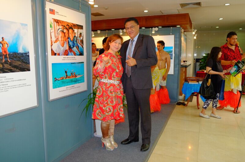 世界商人网董事总经理兼总编王晓玲与萨摩亚驻华大使塔普萨拉伊·特里·托欧玛塔先生在南太平洋国家文化旅游展开幕式上合影
