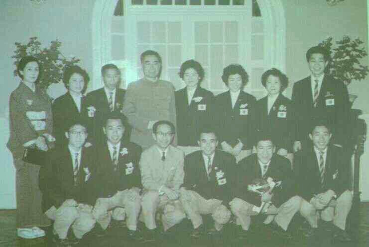 日本著名乒乓球国手松崎君代女士(后排右4)早年在中日建交过程中受周恩来总理的接见的资料照片,田园寺一晃先生的父母也在其中