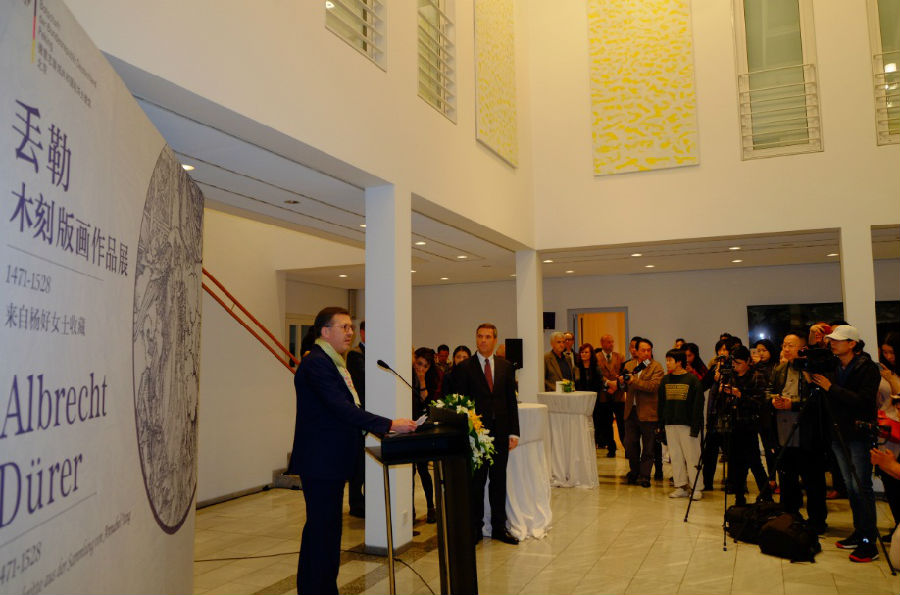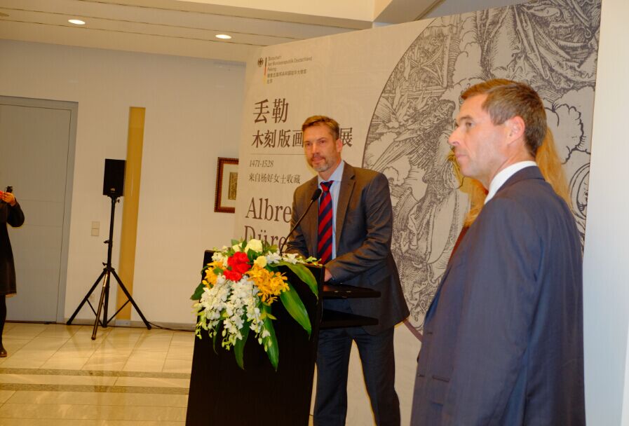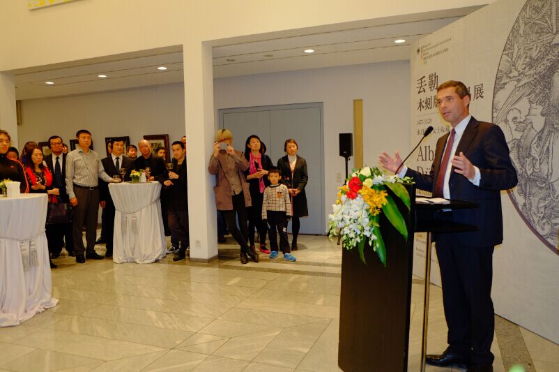 德国驻华使馆文化参赞主持了丢勒木刻版画作品展并致辞