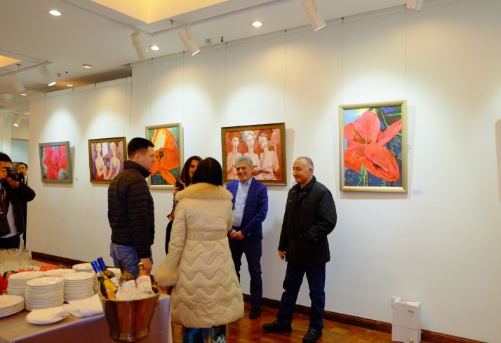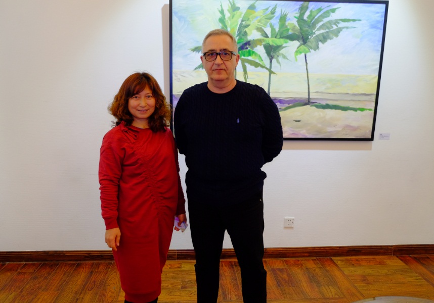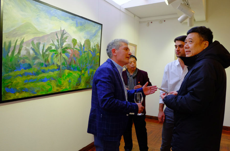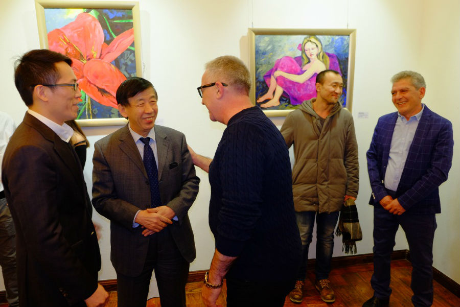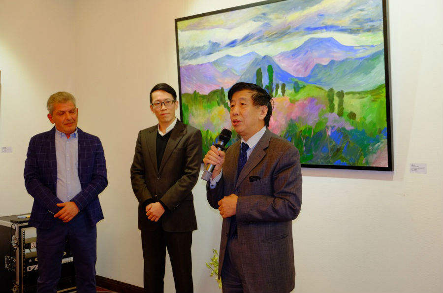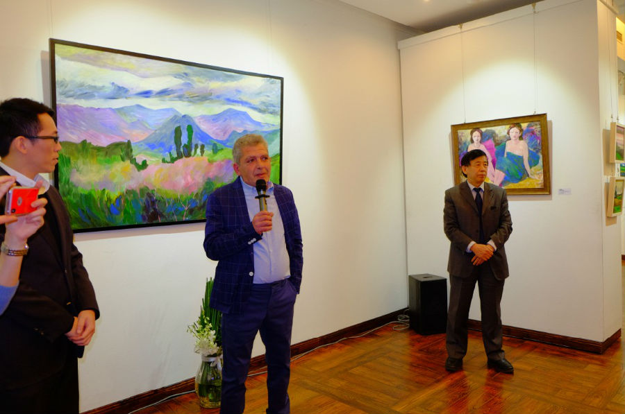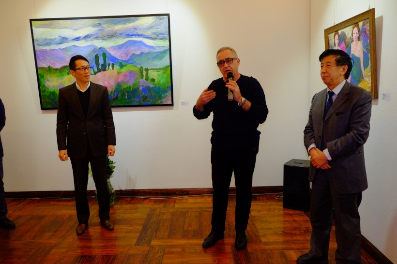 亚美尼亚驻华大使马纳萨良先生(中)出席开幕酒会并致辞支持本国画家画展