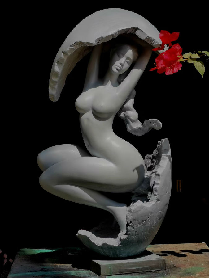 2021年2月24日,正月十三,又是一年春花开,大地开始又一轮的生命孕育。雕塑家夏湘宸完成他2021年首部雕塑作品,创意来自海南岛的黎母山传说。
