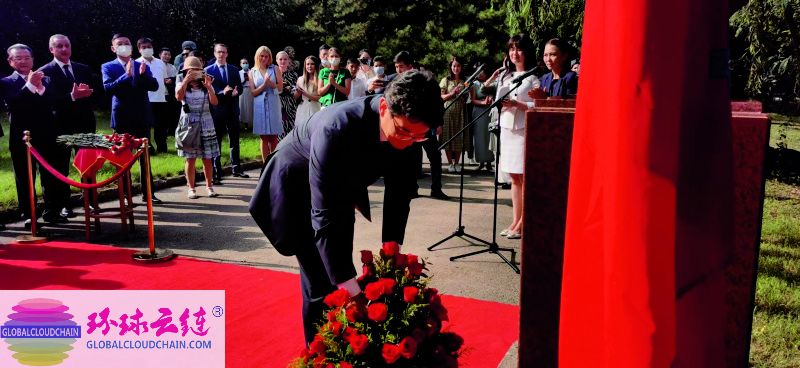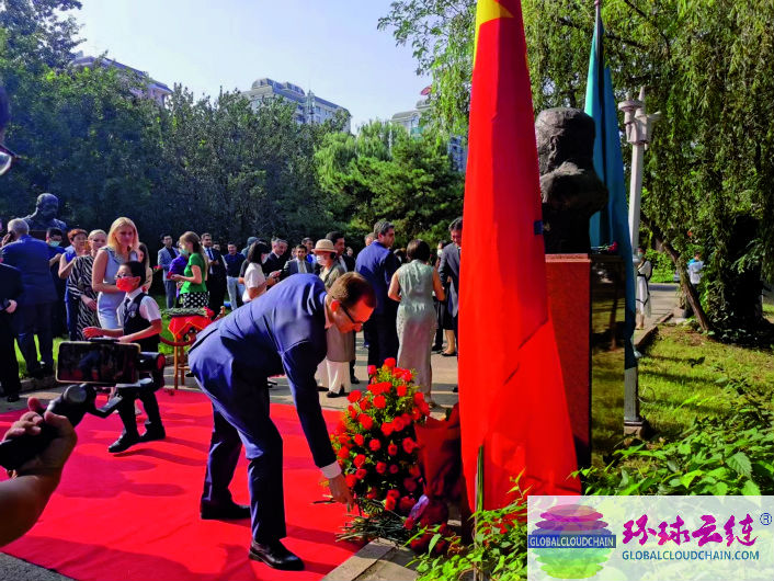 俄罗斯驻华大使,格鲁吉亚驻华大使献花,缅怀哈萨克斯坦伟大诗哈萨克伟大诗人、思想家、启蒙者阿拜·库南巴耶夫