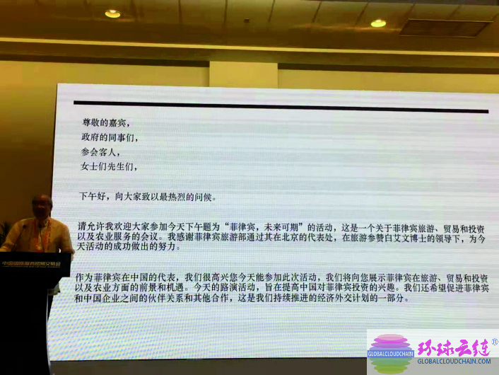 菲律宾驻华大使何塞·圣地亚哥··罗马纳阁下出席并致开幕辞。大使先生强调说:“这是一个菲律宾旅游、贸易和投资以及农业服务的会议。我感谢菲律宾旅游部通过其在北京的代表处,在旅游参赞白艾文博士的领导下,为今天活动的成功做出的努力。”