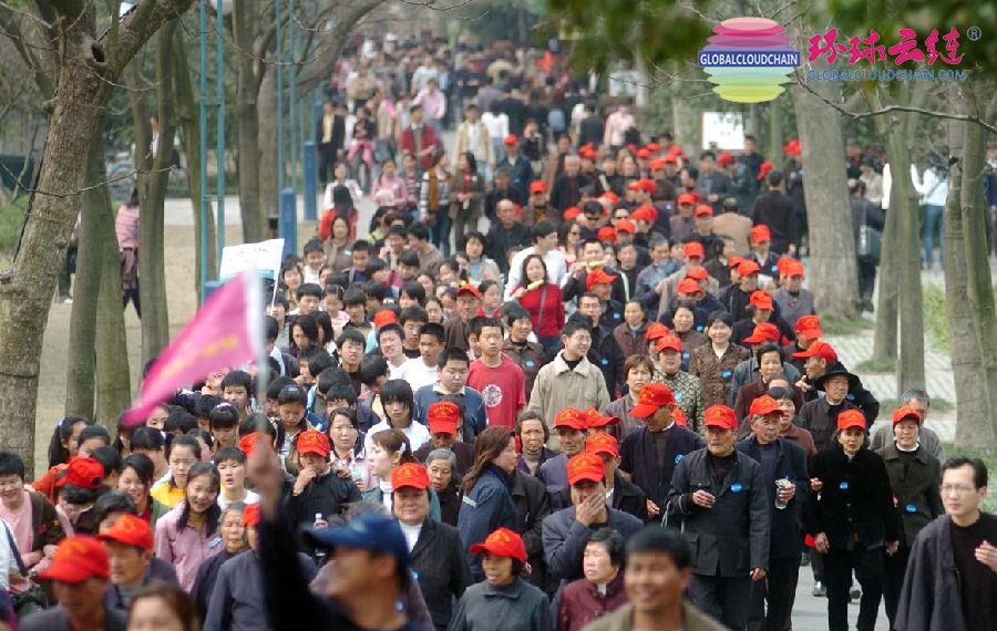 2004年5月1日,在杭州火车站出口处,大批旅行团游客准备出站。“五一”期间,来自全国各地的大批游人通过铁路和公路涌入杭州,形成旅游高峰。新华社发(李震宇 摄)