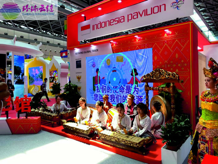 第18届中国—东盟博览会展馆展出了由21家在中国的印尼公司和经销商团队的产品,他们通过食品、饮料、珠宝、家具、燕窝和艺术表演来展现印尼。