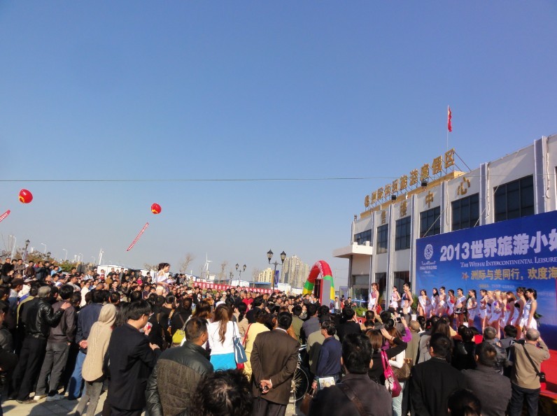世界旅游小姐在威海洲际假日休闲度假区售楼中心广场走秀