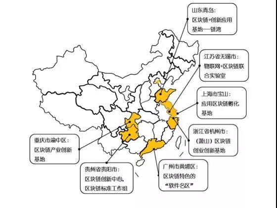 除了雄安新区,其他城市也在加速布局区块链。这其中就包括贵阳、杭州、广州、上海、江苏等地。