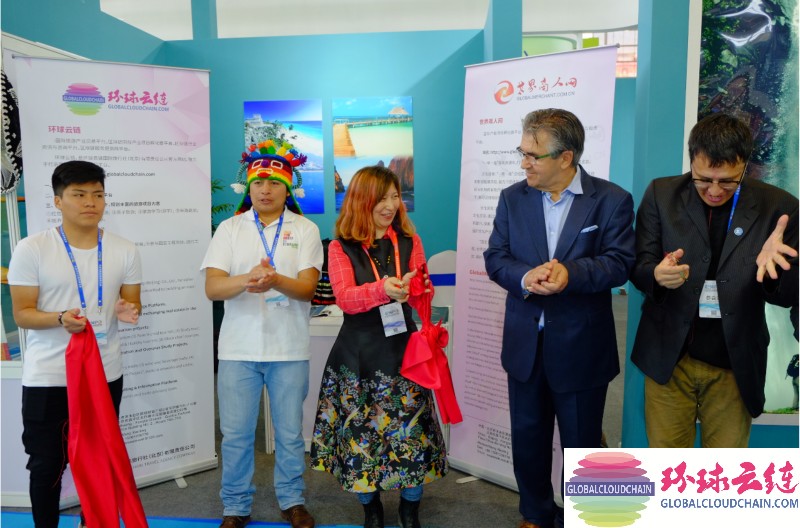环球云链旅行社在首届大运博览会上举行开业剪彩仪式